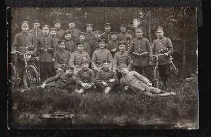 Soldatengruppe mit Fahrrad - Nicht gelaufen. (Fahrrad, Soldaten, I WK.)