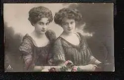 Zwei Frauen. Foto coloriert - Gelaufen 1911. (Schöne Frauen).
