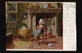 Hausmütterchen - Gelaufen. 1925.Die Karte ist an den Rändern abgeschnitten. (Nähmaschinen, Nähen, Weben, Spinnen).