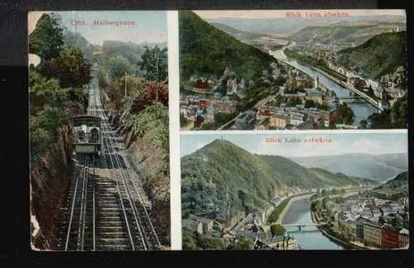 Bad Ems. Malbergbahn, Blick Lahn abwärts, Blick Lahn aufwärts - Gelaufen. 1912. (NPLZ 56130).
