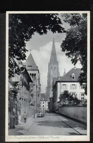 Freiburg. Die Burgstrasse mit dem Blick an d. Münster - Gelaufen 1940. (NPLZ 79000).