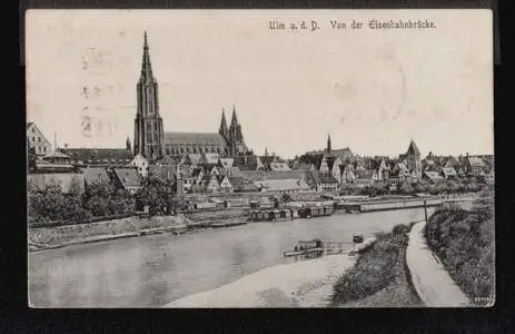 Ulm. Von der Eisenbahnbrücke - Feldpost 1918. (NPLZ 89000).