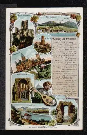 Rhein. Warnung vor dem Rhein. - Nicht gelaufen. (Kunst, Künstler, Fluss, Rhein)