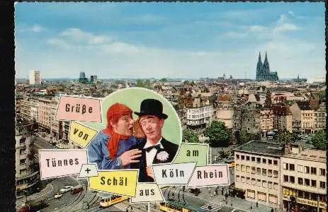 Köln. Grüßen von Tünnes und Schäl aus Köln am Rhein - Nicht gelaufen. (NPLZ 50000)