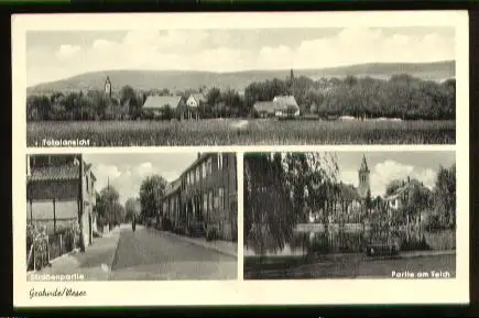 Grohnde. Weser. Totalansicht, Strassenpartie, Partie am Teich