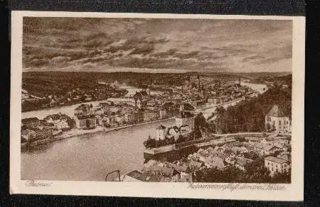 Passau. Zusammenfluss der drei Flüsse - Nicht gelaufen. (NPLZ 94030)