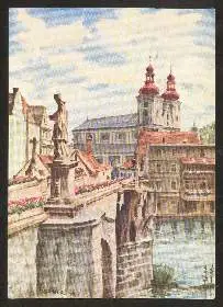 x02455; Glatz. Schlesien, Minoritenkirche mit der gotischen Brücktorbrücke.