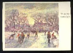 x03029; Ein gutes neues Jahr. Schlittschuhläufer. - Ungebr. (Kunst, Künstler, Malerei)