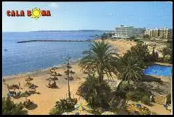 x05765; Cala Bona al fondo Cala Millor. Mallorca. - Gelaufen. Briefmarke entfernt, hier Karte berieben. (Spanien, Balearen, Mallorca).