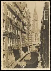 x13758; Hamburg. Stöckelhörnefleet mit Blick auf die Nicolai Kirche.