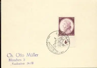 x16159; Musik Stempel: Salzburg, Mozarts Geburtsstadt 27.01.1756; 1701 zum 150 Todestag1941; 05.12.1941 Mi810.