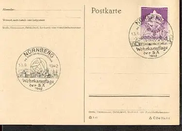x16175; NS-Zeit: Wehrkampftage der SA 1942. Die Stadt der Reichsparteitagen. Nürnberg. 13.9.1942, Mi818.Auf Karte.