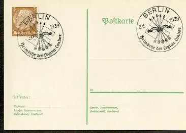 x16185; NS-Zeit: Heimkehr der Legion Condor. Berlin 6.6.1939. Auf Karte..