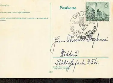 x16224; NS-Zeit: Kolonial Schau 19.10- 3.11.40. Linz (Donau) 23.10.40 Mi740. Auf Karte.