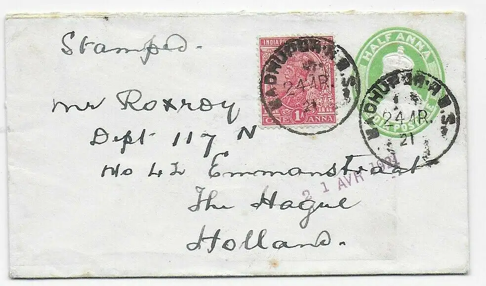 sehr schöner und seltener Bahnpostbeleg aus Britisch Indien F4 OUT / SET N°1 mit Mischfrankatur King Edward / King George 1912 nach nach Frankfurt am Main versandt. Ich bin sehr zufrieden, vielen Dank!