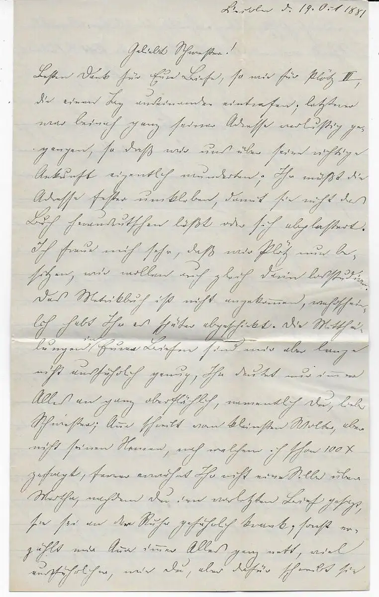 Brief 1881 aus Lincoln über Bremen oder Hamburg nach Berlin, Inhalt