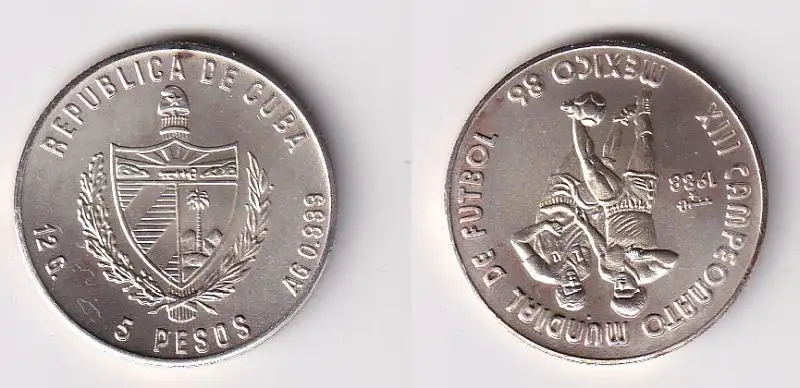 5 Pesos M?nze Kuba Cuba 1988 Fussball Wm in Mexiko 1986 Stgl. (167454)