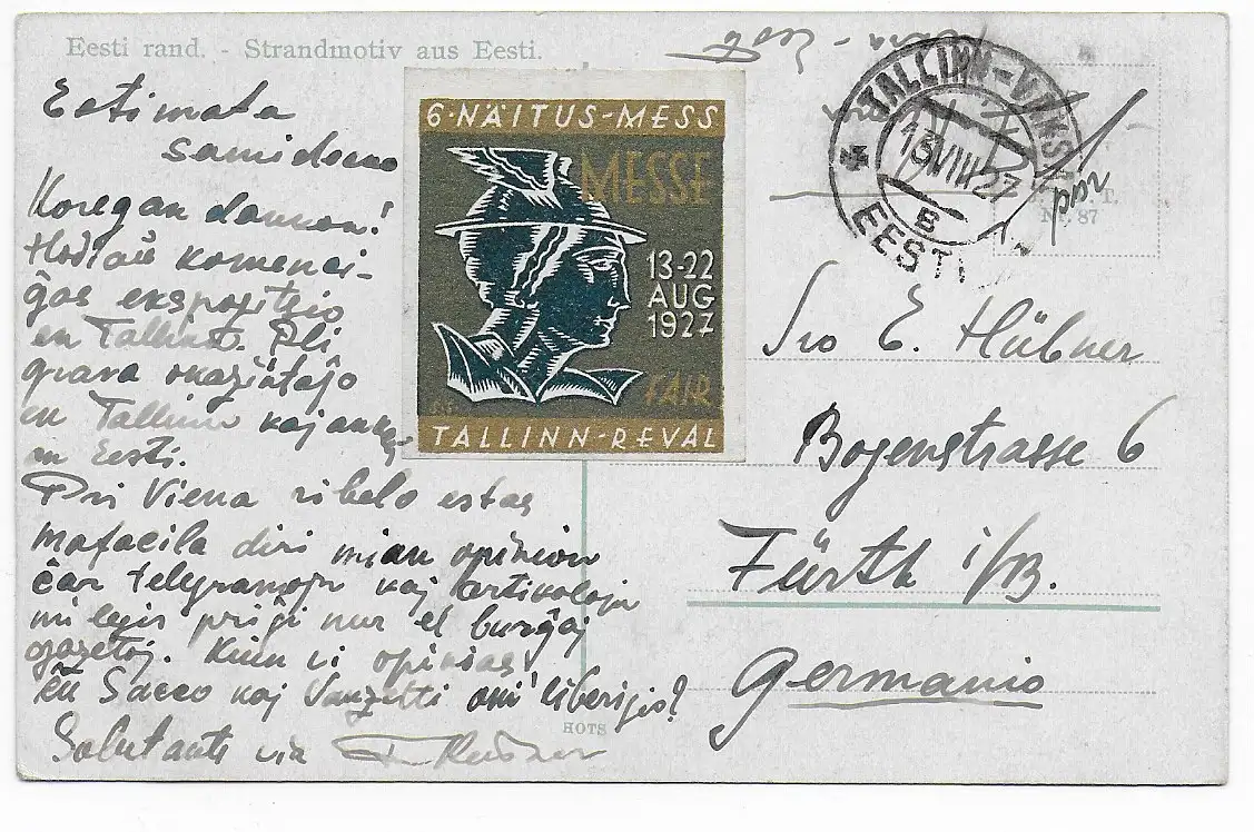 Estland: 1927  Näitus Mess, Messe, Tallinn, Vignette