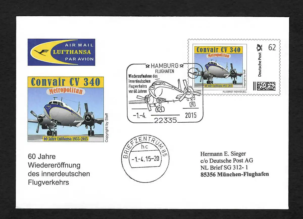 Bund: 60 Jahre Lufthansa, Conair CV 340, Weideraufnahme Flugverkehr, 2015