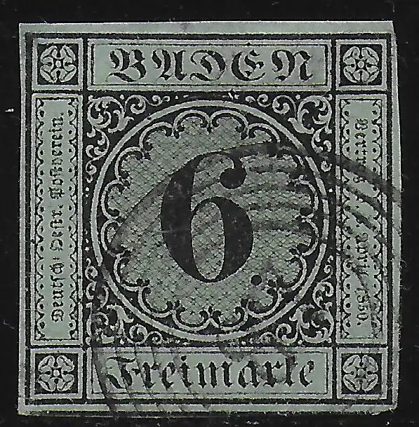 Baden: MiNr. 3, gestempelt, Luxusstück mit allen Rändern