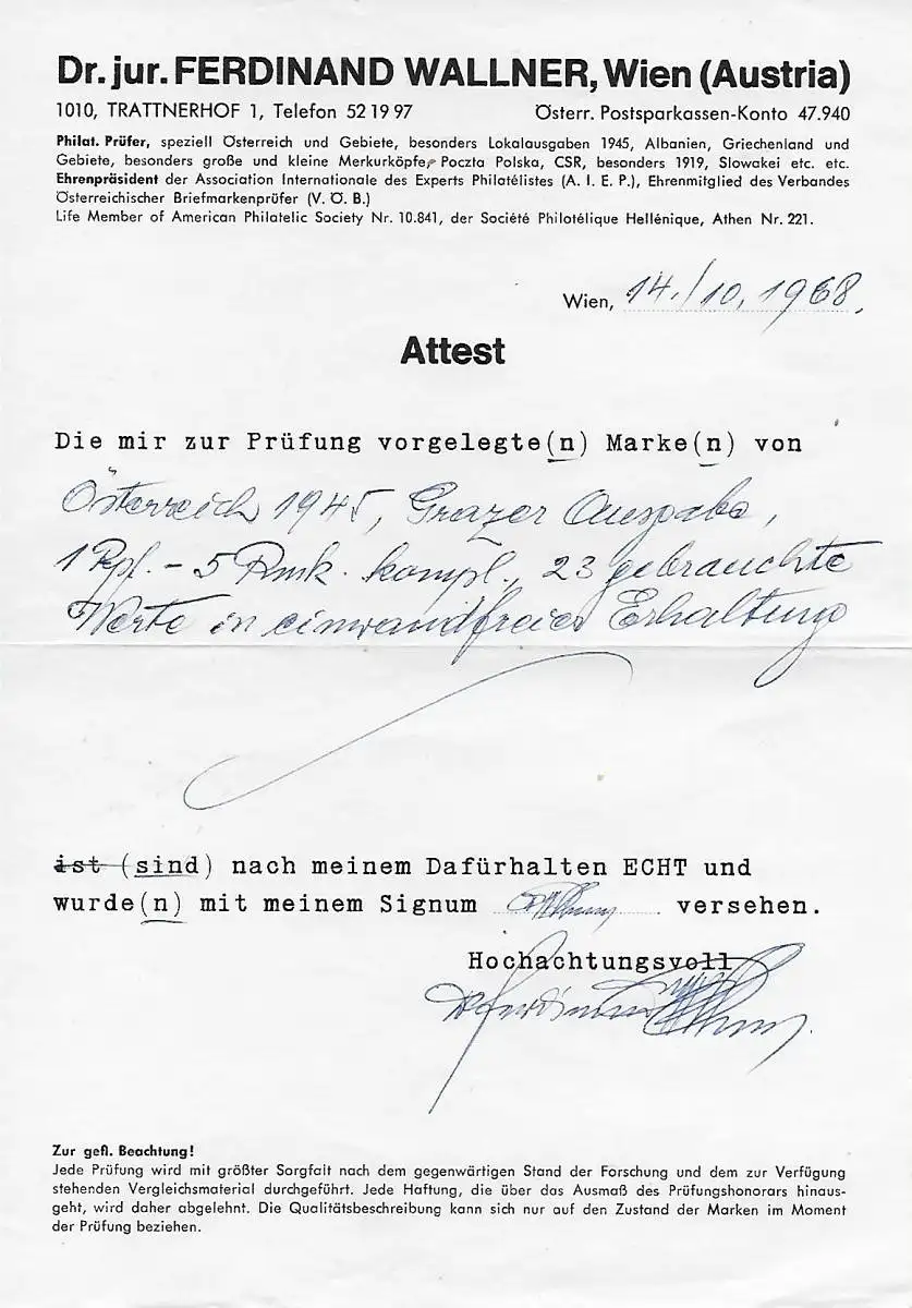 Österreich 1945: Grazer Ausgabe komplet, gestempelt mit Attest