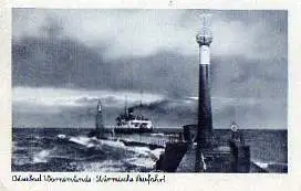 0 Ostseebad Warnemünde. Stürmische Ausfahrt. - Gelaufen 1942. (NPLZ 18119)