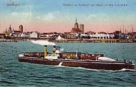 0 Stralsund. Überfahrt von Stralsund nach Rügen mit dem Trajektschiff - Gelaufen 1924. (NPLZ 18435)