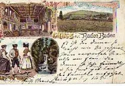 03007; Baden-Baden. Großer Saal im Konversationhause, Lawn Tennis, Geroldsuer Wasserfall - Gelaufen 1898. Kl. Knick. (NPLZ 76530, Tennis).