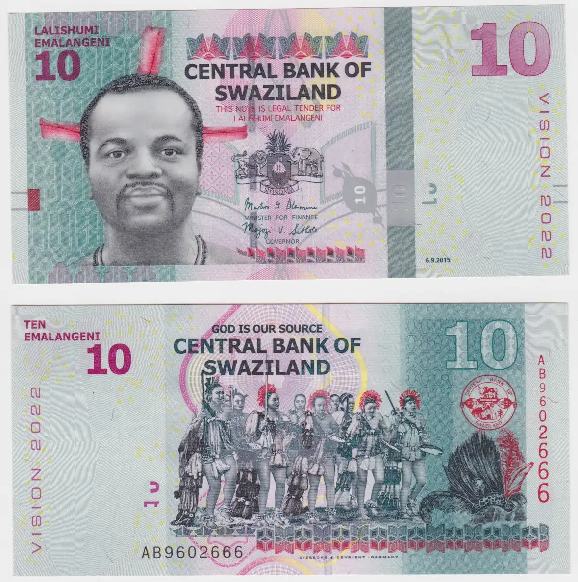 10 Emalangeni Banknote Swasiland Swaziland 2015 bankfrisch UNC (159514)