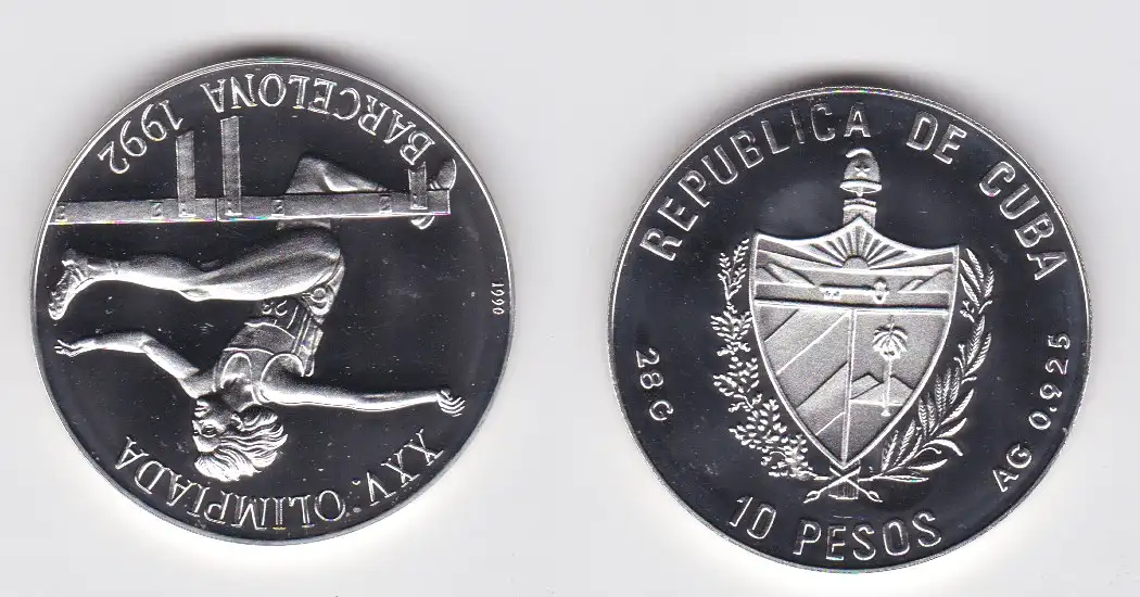 10 Pesos Silber M?nze Kuba 1990 H?rdenlauf Olympiade Barcelona 1992 (172376)