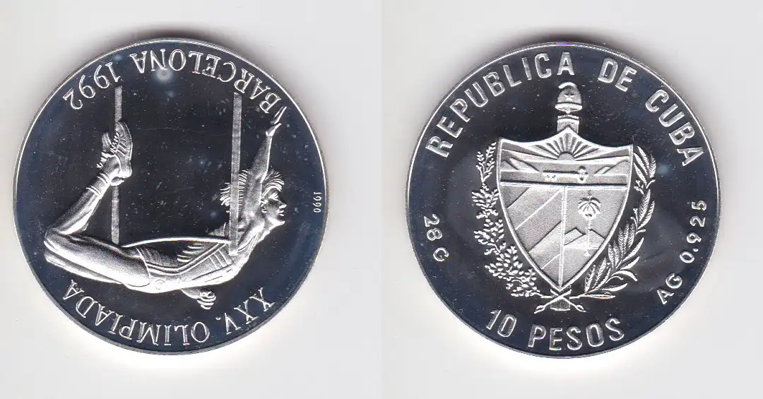 10 Pesos Silber Münze Kuba 1990 Hochsprung Olympiade Barcelona 1992 (172628)