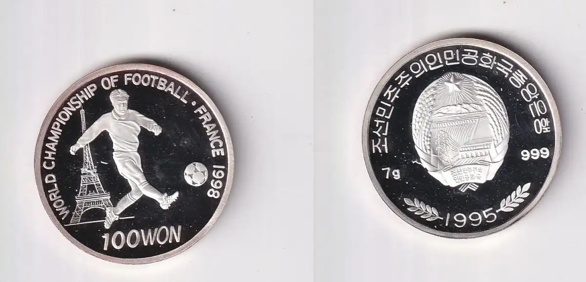100 Won Silber Münze Korea 1995 Fußball-WM Frankreich 1998 7g 999 Ag (105269)