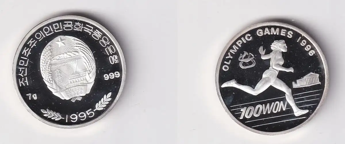 100 Won Silber Münze Korea 1995 Olympische Spiele 1998 Sprint 7g 999 Ag (105918)