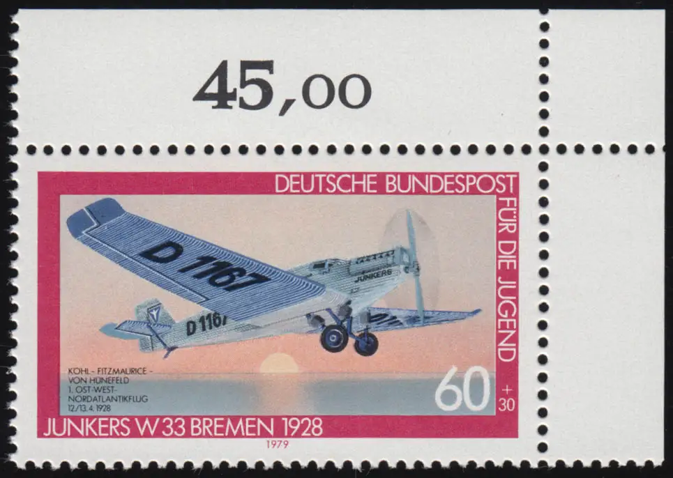 1007 jeunes aérospatial Junkers 60+30 Pf ** coin o.r.