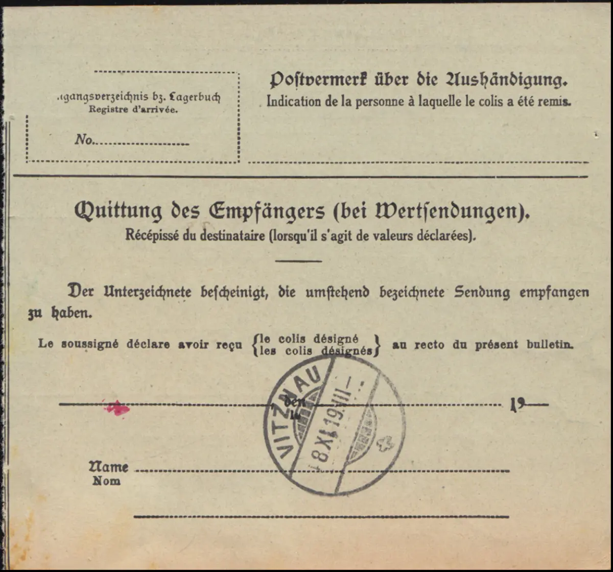 102+104 Le roi Louis sur carte de paquet international pour le 3.11.19 après VITZNAU 8.11.