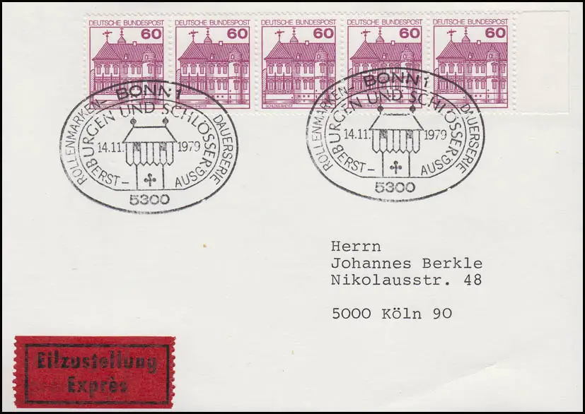 1028AI BuS Château Rheydt, 4 bandes MeF Carte postale Eil-FDC Essent Bonn 14.11.79