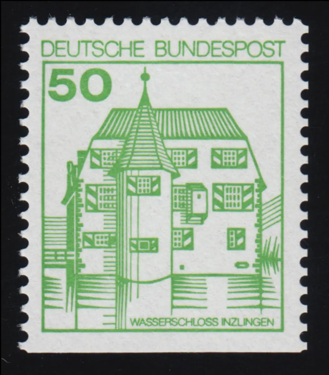 1038DII u Châteaux et château 50 Pf inclingons, ** LETTERESET jaune