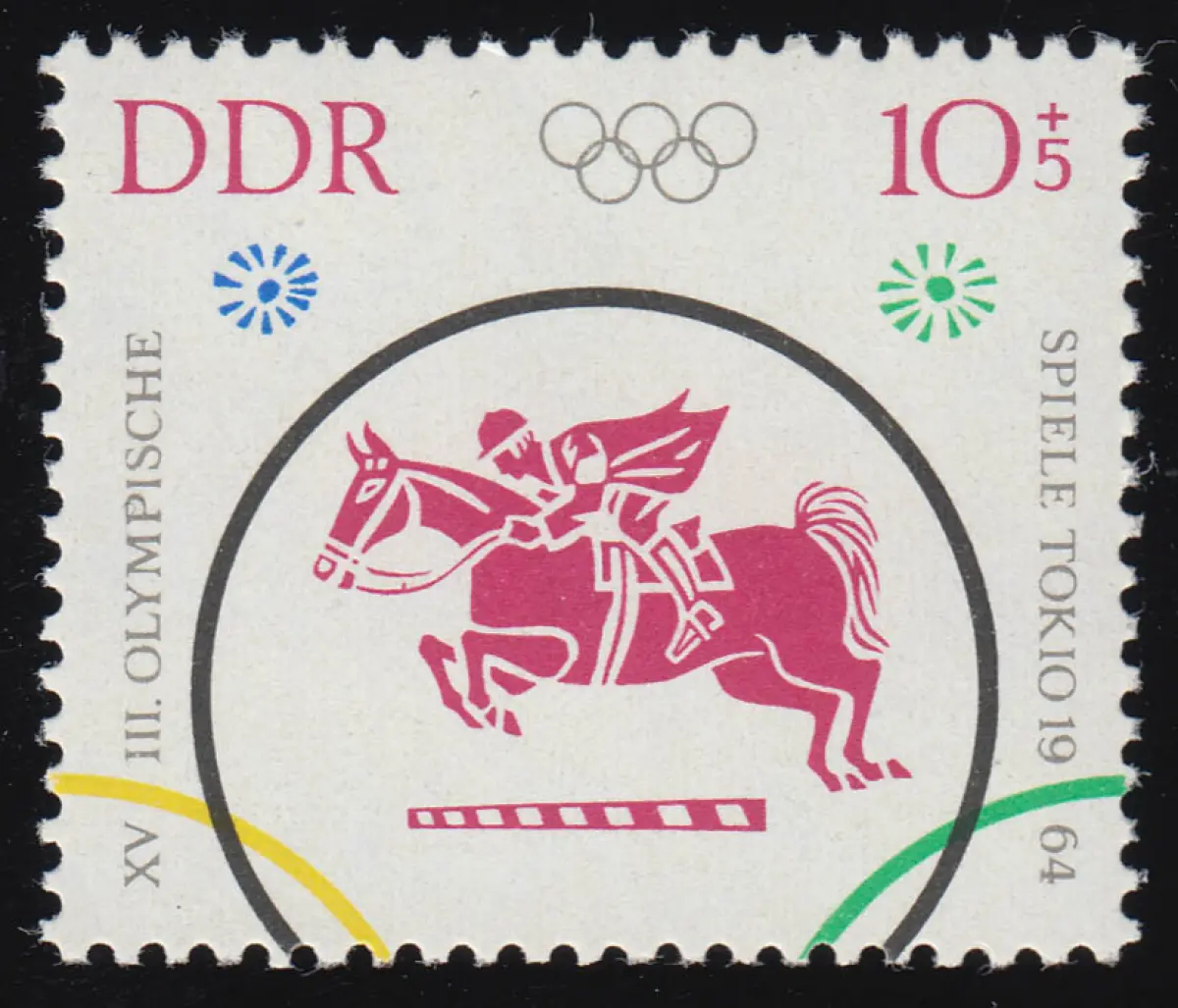 1040 Olympiade Tokio Springreiten 10+5 Pf. mit PLF Fleck am Zügel, postfrisch **