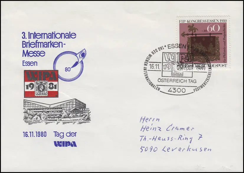 1065 Congrès FIP EF Lettre SSt Essen Fesse WIPA Autriche Jour 16.11.1980