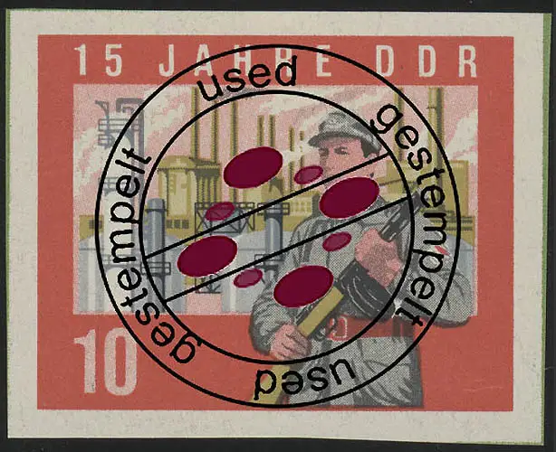 1066B RDA Groupes de combat 10 Pf, UNGEZÄHNT, O Tamponné
