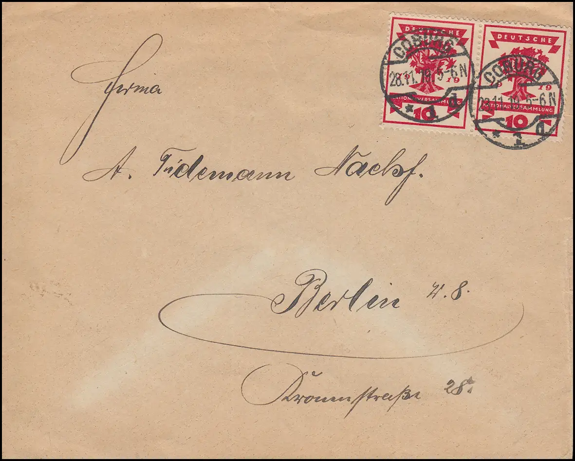 107 Assemblée nationale en couple comme MeF sur lettre COBURG 28.11.1919 à Berlin