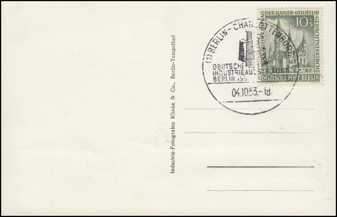 107 Eglise commémorative 10 Pf. Blanko-AK, SSt BERLIN Exposition industrielle 4.10.53