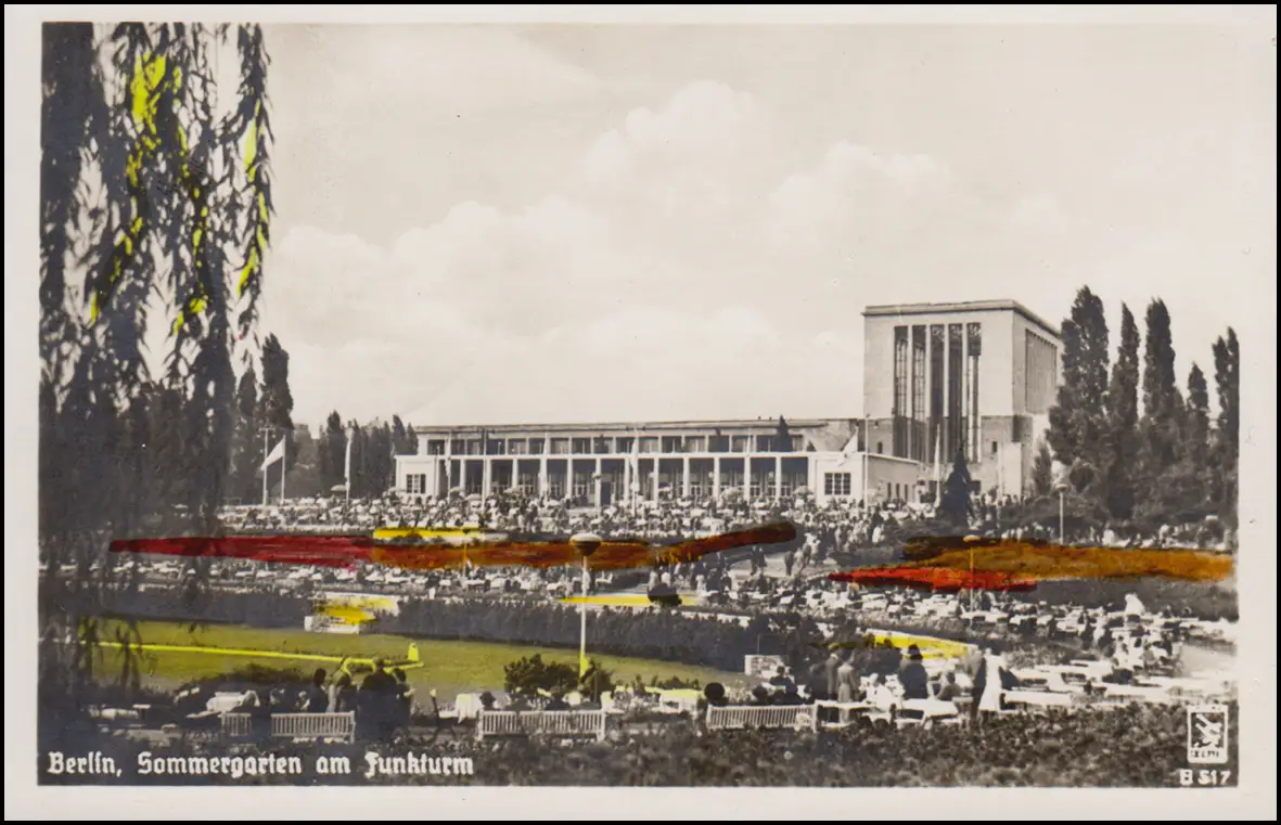 Carte postale Berlin - Sommergarten am Funkturm / en couleur, cachet spécial BERLIN-CHARLOTENBURG FRANÇAIS BRELIN 1953, carte sans adresse / adresse Numéro de catalogue: 107 Examen: original Référence produit: 00000000017859