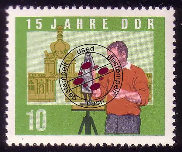 1072A DDR Bauwerkwerker 10 Pf, dan, O Tamponné