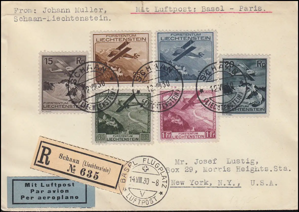 Lettre recommandé à l'étranger par Bâle et PARIS 14.8.30 selon NEW YORK 23.8.1930 Numéro de catalogue: 108-113 Examen: original Référence produit: 0000000003548>p>Note: Cet article n'est disponible qu'une seule fois. Vous recevrez exactement l ' article représenté.