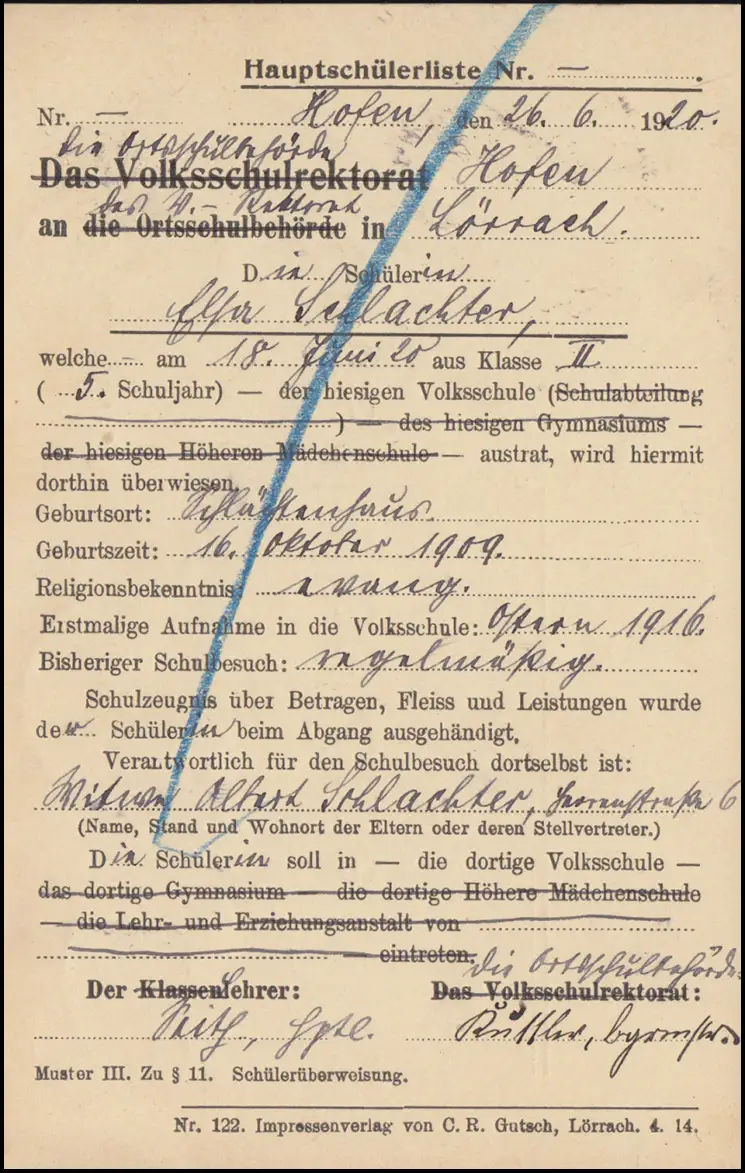 Carte postale de formulaire au Recteur de l'école populaire pour les transferts scolaires / certificat scolaire, selon Lörrach / Baden-Württemberg Numéro de catalogue: 108 Examen: original Numéro d'article: 00000000017816>Note: Cet article n'est disponible qu'une seule fois. Vous recevrez exactement l ' article représenté.