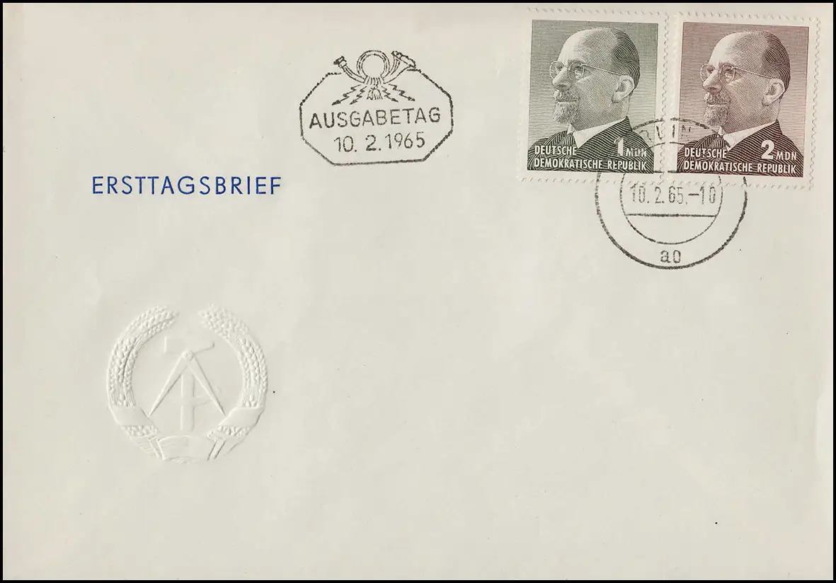 1087-1088 Ulbricht 1 MDN et 2 MMN en tant que jeu sur les bijoux FDC ET-O BERLIN 10.2.65