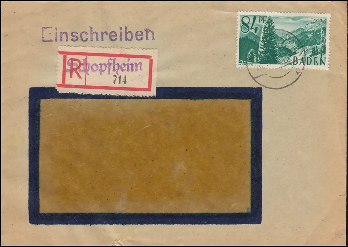 Enflammation individuelle adaptée aux frais de port sur lettre à distance de l'Association des Badische Textilesinustrie e.V. dans la zone d'occupation française de Schopfheim (enveloppe Fensterbief). N° de catalogue: 12 Examen: original Référence produit: 000000000172890>Note: Cet article n'est disponible qu'une fois. Vous recevrez exactement l 'article illustré.