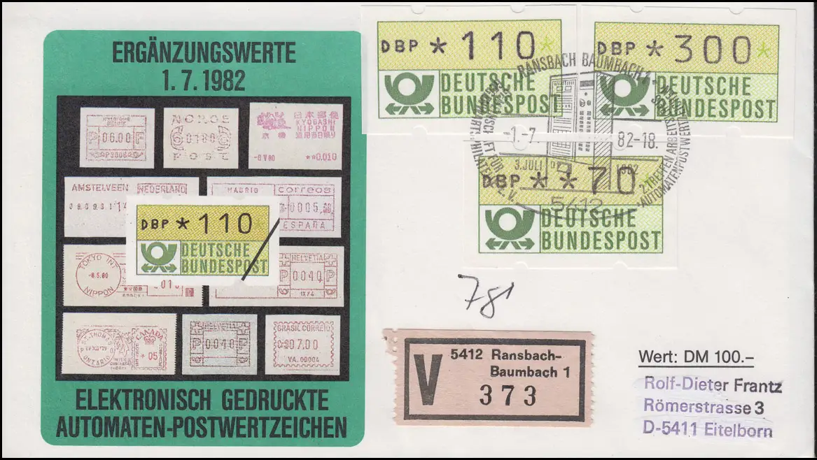1.1 Trois valeurs supplémentaires ATM 70+110+300 Pf sur la valeur FDC Ransbach ESSt 1.7.82