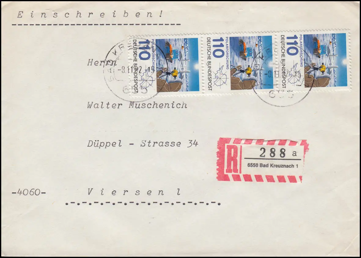 1100 Recherche Polaire de 3 bandes verticales MeF R-Lettre BAD KREUZNACH 8.11.1982